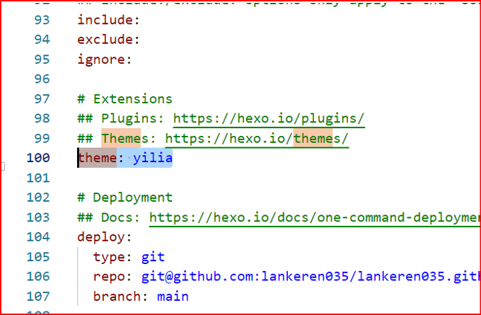 git clone https://github.com/litten/hexo-theme-yilia.git themes/yilia则会在theme下创建yilia文件夹 - 在_config.yml中将theme后的改为yilia